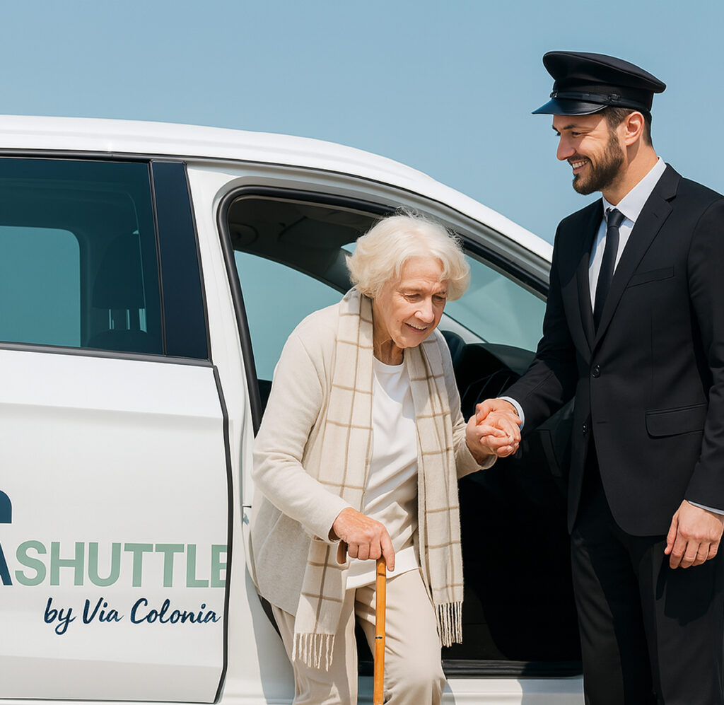 Via Colonia entlastet Reha-Kliniken und soziale Einrichtungen bei der Organisation von Fahrten – pünktlich, persönlich und mit sozialem Feingefühl.